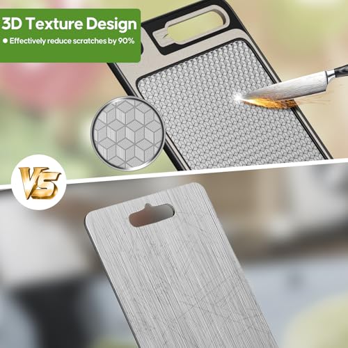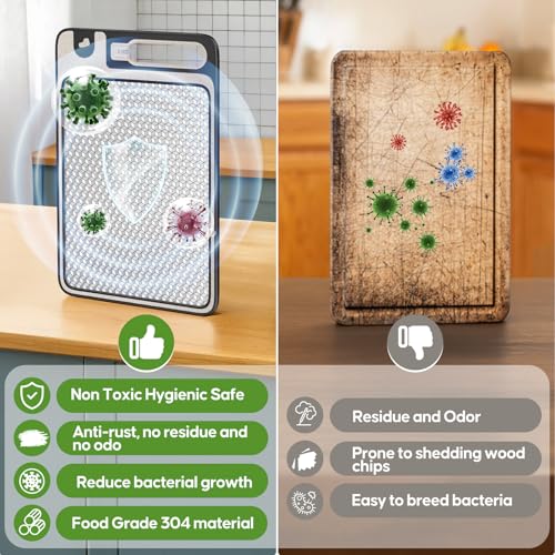 【Prepare Food Safely】The stainless steel chopping boards is made of natural antibacterial materials. One side is composed of high-quality 304 food-grade stainless steel, and the other side is made of high-quality wheat straw fibers free of bisphenol A. Different from traditional wooden cutting boards, it can reduce bacterial adhesion and inhibit growth, making food prep safer.