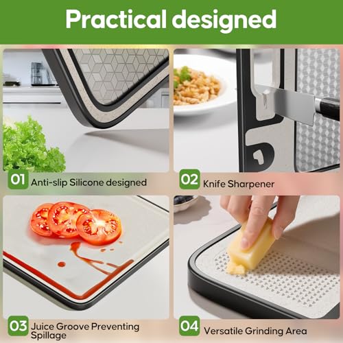 【Non-slip Silicone Edge】The safe, stable and efficient anti-slip silicone edge firmly fixes the chopping board in the appropriate position, ensuring stable cutting, preventing slipping or sliding, and reducing the risk of hand injury