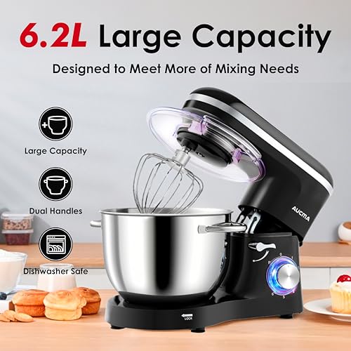 Aucma Stand Mixer, 6.2L Food Mixers for Baking, Electric Kitchen Mixers with Bowl, Dough Hook, Wire Whip & Beater (6.2L, Black)