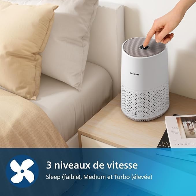 Thoroughly cleans rooms up to 44 m²: with a CADR of 170 m³/h, its powerful airflow cleans the air in minutes (4) and removes particles such as PM2.5, pollen, dust, viruses and other pollutants